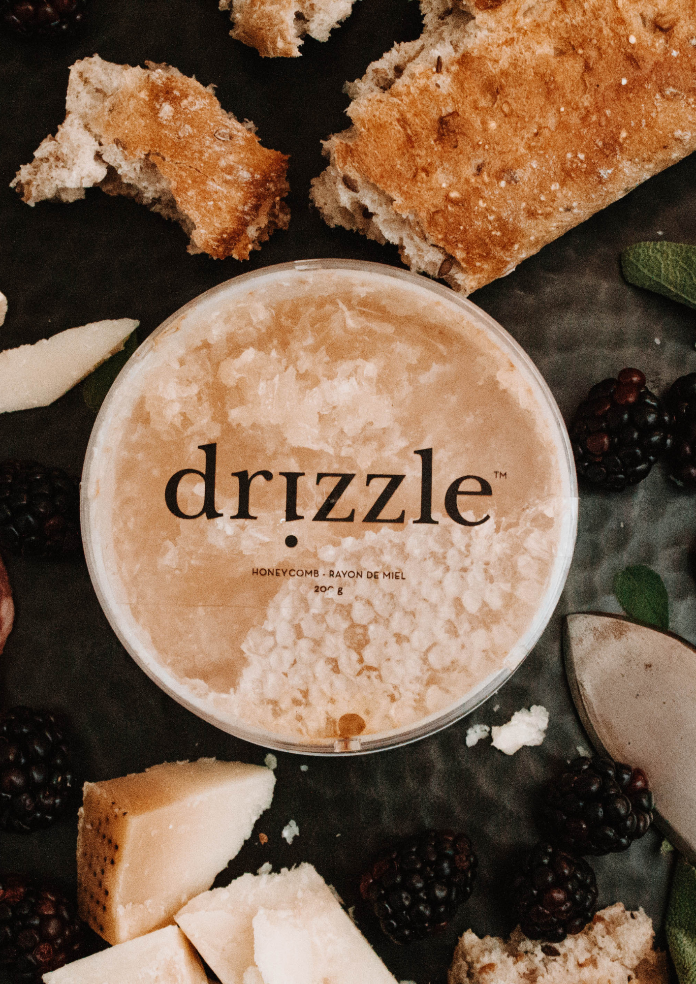 Drizzle Honeycomb is a rare and sweet indulgence. The light wax combs are 100% edible and filled to bursting with fresh, delicious honey that you can eat with a spoon. Honeycomb is the rawest form of Drizzle Honey and is a luxurious topping or pairing for cheese, fruit, meat, and bread. An essential for any charcuterie board!